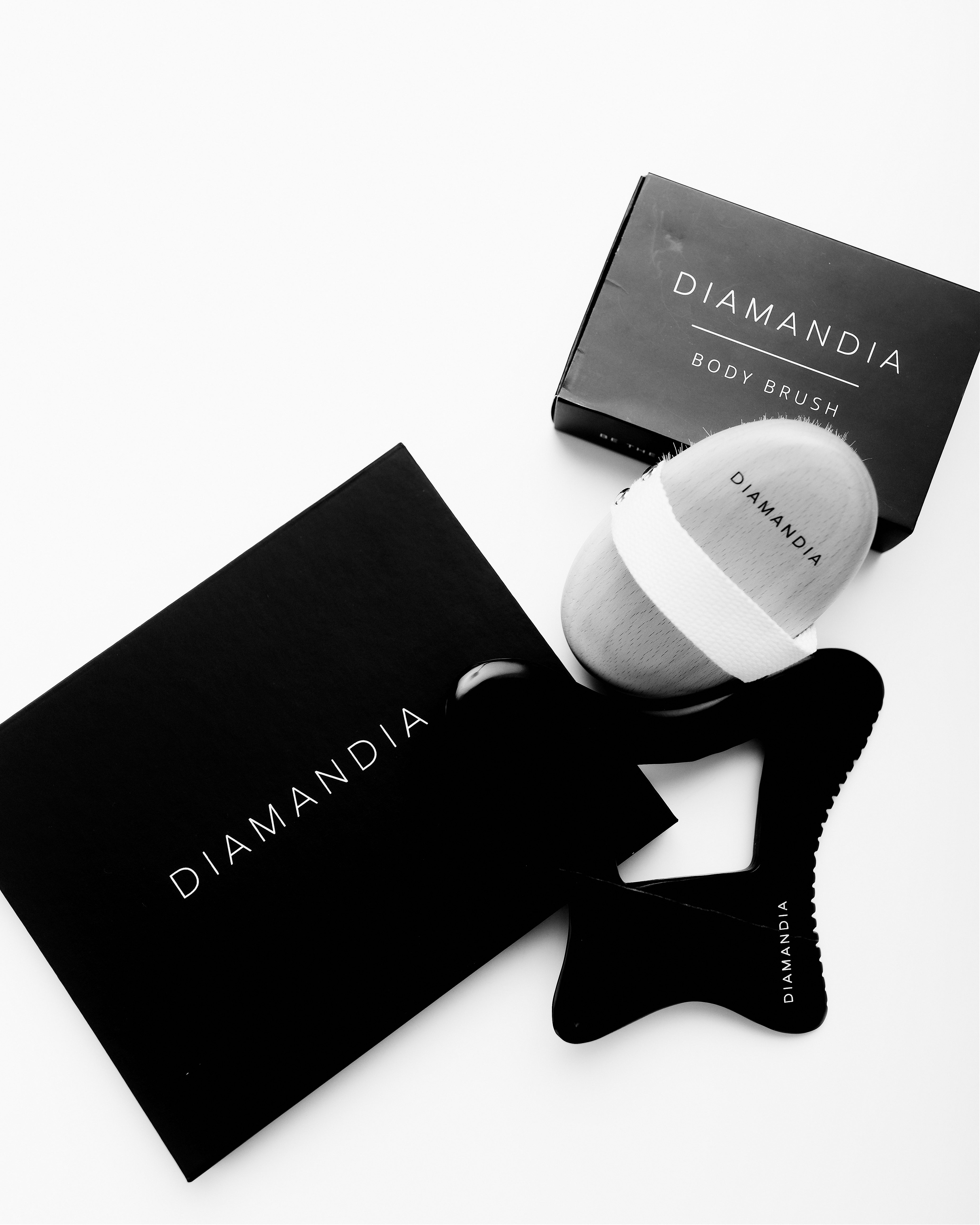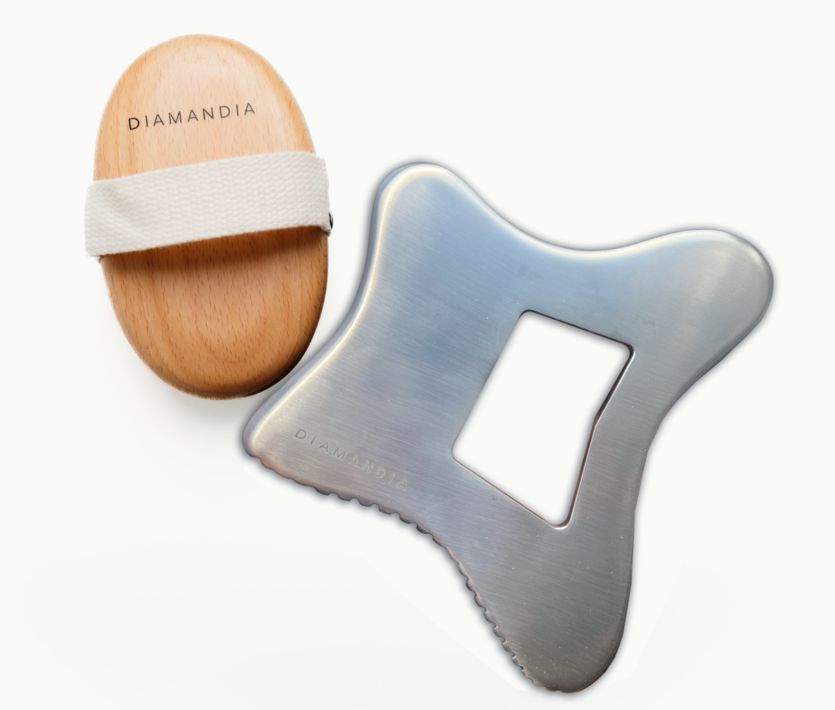 The program is enhanced by DIAMANDIA's Body Gua Sha tools. Made from Bian stone and stainless steel, these tools support lymphatic drainage and improve blood flow, essential for detoxification.