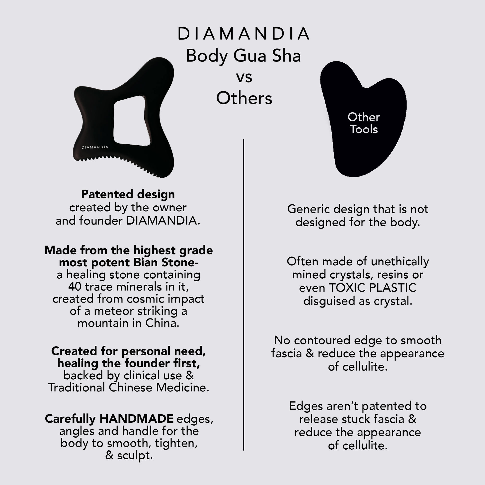 Targets inflammation and toxins that our bodies naturally hold. Stimulate the lymphatic system & drain excess fluids from the body with our Bian Stone Body Gua Sha.