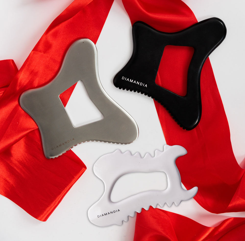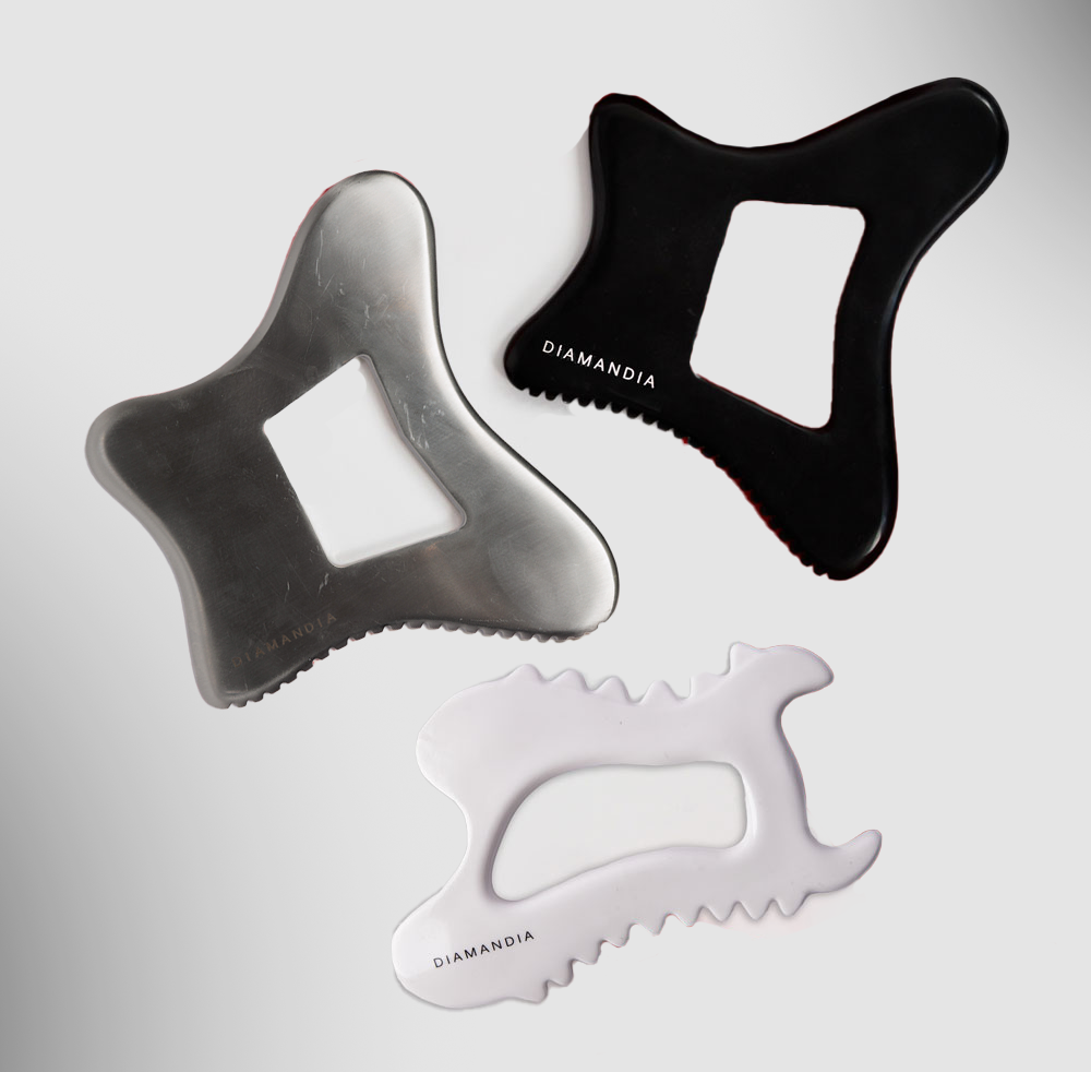 The most elite version of wellness. Elevate your wellness routine with the DIAMANDIA Body Gua Sha Set, expertly designed to support your anti-inflammatory lifestyle and enhance lymphatic drainage. These luxurious tools helps to restore and sculpt muscles, rejuvenate circulation, boost immunity, reduce swelling, and improve skin appearance. All are easy to hold, even with fingernails, they are the ultimate tools for holistic self-care. Combinate all gua shas with the other tools: Choose You Scrub, Glow Up Body Polish, dry brush and oil to maximize the reduction of inflammation.